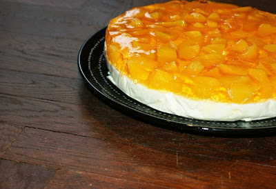 Tortownicę o średnicy 23 cm wykładamy szczelnie folią aluminiową. Galaretkę cytrynową rozpuszczamy w połowie szklanki wrzącej wody, a brzoskwiniową w delikatnie zmniejszonej ilości wody, jaką przewiduje przepis na opakowaniu. Pozostawiamy do ostygnięcia i lekkiego stężenia. Masło z częścią cukru ucieramy robotem na puch, dodajemy stopniowo po 1 żółtku i resztę cukru. Gdy masa jest jednolita i pulchna dodajmy stopniowo twaróg na przemian z tężejącą galaretką cytrynową i pianą ubitą z białek. Całość delikatnie, ale dokładnie mieszamy. Przelewamy do formy. Można przygotować spód np. dodać pokruszone herbatniki bądź wyłożyć blaszkę biszkopcikami, ja jednak tym razem pominęłam. Torownicę z masą wstawiamy do lodówki. Gdy masa serowa stężeje układamy na niej pokrojone w kostką brzoskwinie i zalewamy tężejącą galaretką brzoskwiniową. Wstawiamy do lodówki na kilka godzin, ja zazwyczaj przygotowuję sernik dzień wcześniej.